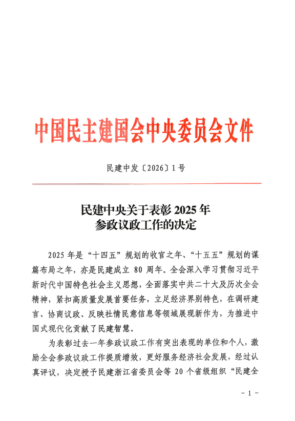 近日,民建中央发布《民建中央关于表彰2025年参政议政工作的决定》(民建中发〔2026〕1号),我校民建会员、经济管理学院徐可博士获评“民建全国参政议政先进个人”,这是我校统一战线成员在国家级参政议政表彰中荣获的重要成果。