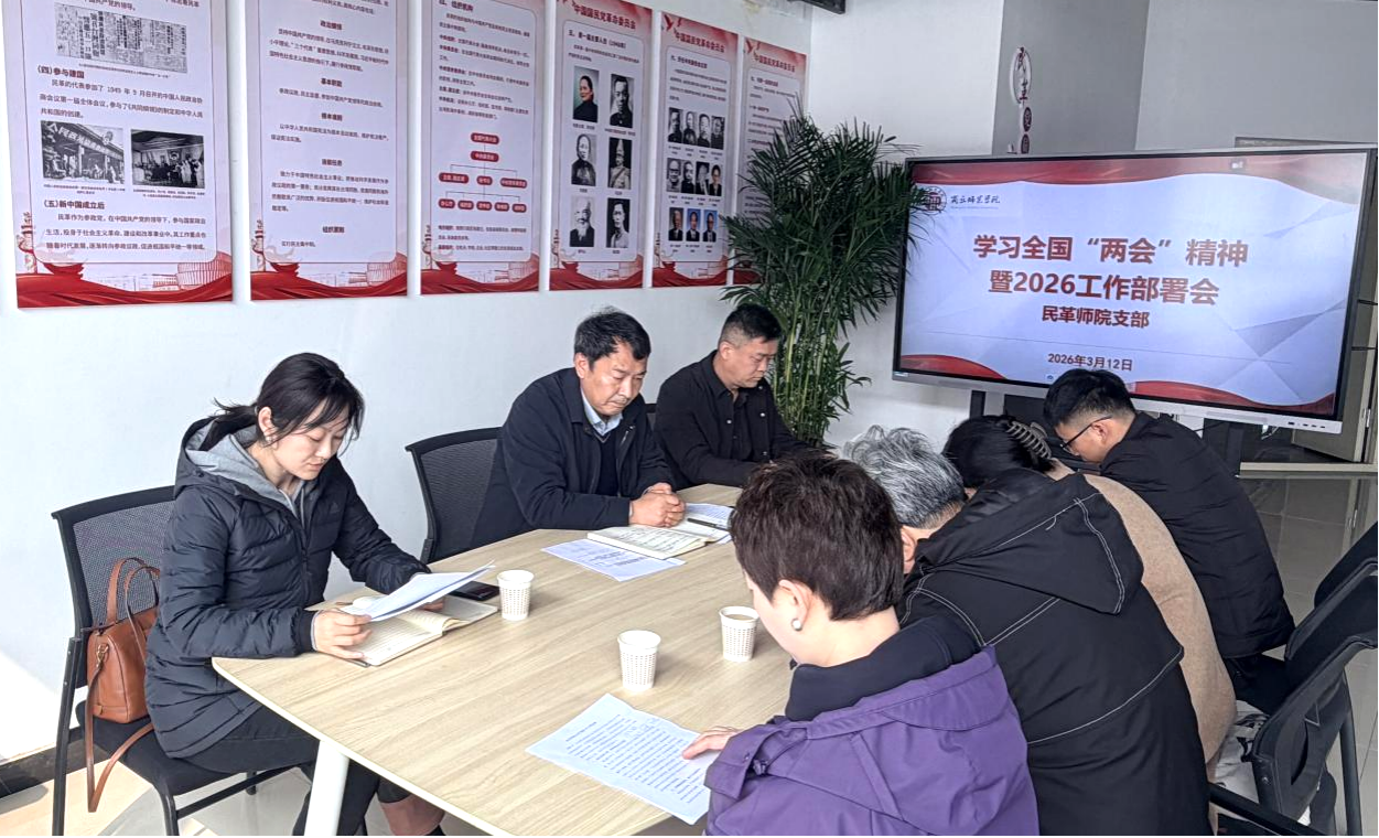 3月12日上午,民革商丘师范学院支部召开专题座谈会,深入学习贯彻2026年全国两会精神和民革十四届十四次中常会精神,部署支部2026年工作。会议由支部主委、艺术设计学院院长朱长征主持,副主委陈毓、江欣及部分党员代表参加。
